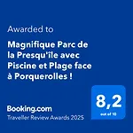 The property provides coffee/tea making machines and a fully equipped kitchen with a microwave, a fridge, and a toaster. Hyeres airport is located 10 km away, while Chambre des Metiers bus station is in close proximity to Magnifique Parc De La Presqu'Ile Avec Piscine Et Plage Face A Porquerolles !. The accommodation boasts access to an aqua park and a golf course, as well as a terrace with views of the pool. Also, guests can take advantage of aerobics.